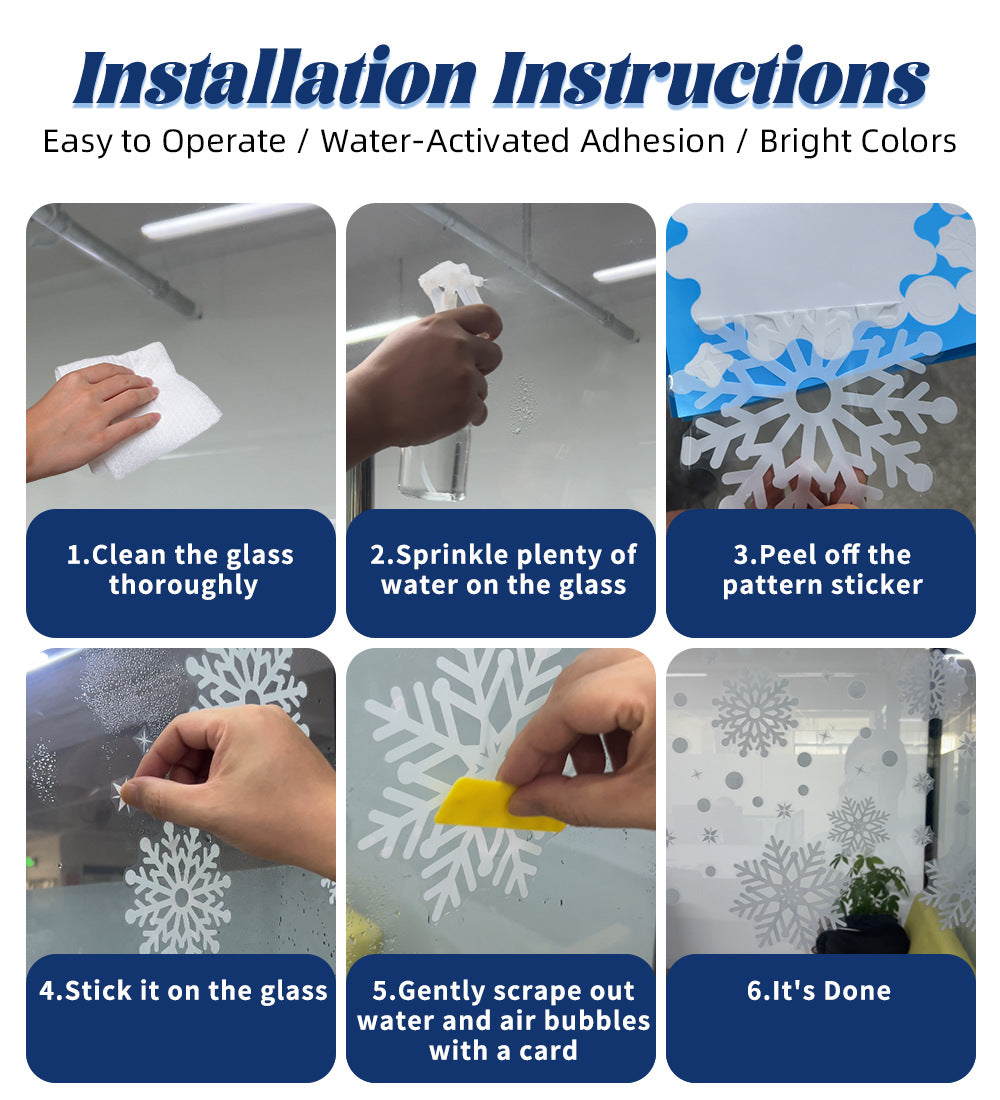 Decorating for Christmas has NEVER been this easy!🎅 Simply spray water on any glass surface, place your favorite holiday design, and watch it magically cling—no glue, no residue, no stress! Made from durable static cling material, these vibrant stickers can be repositioned again and again until you get the perfect look.